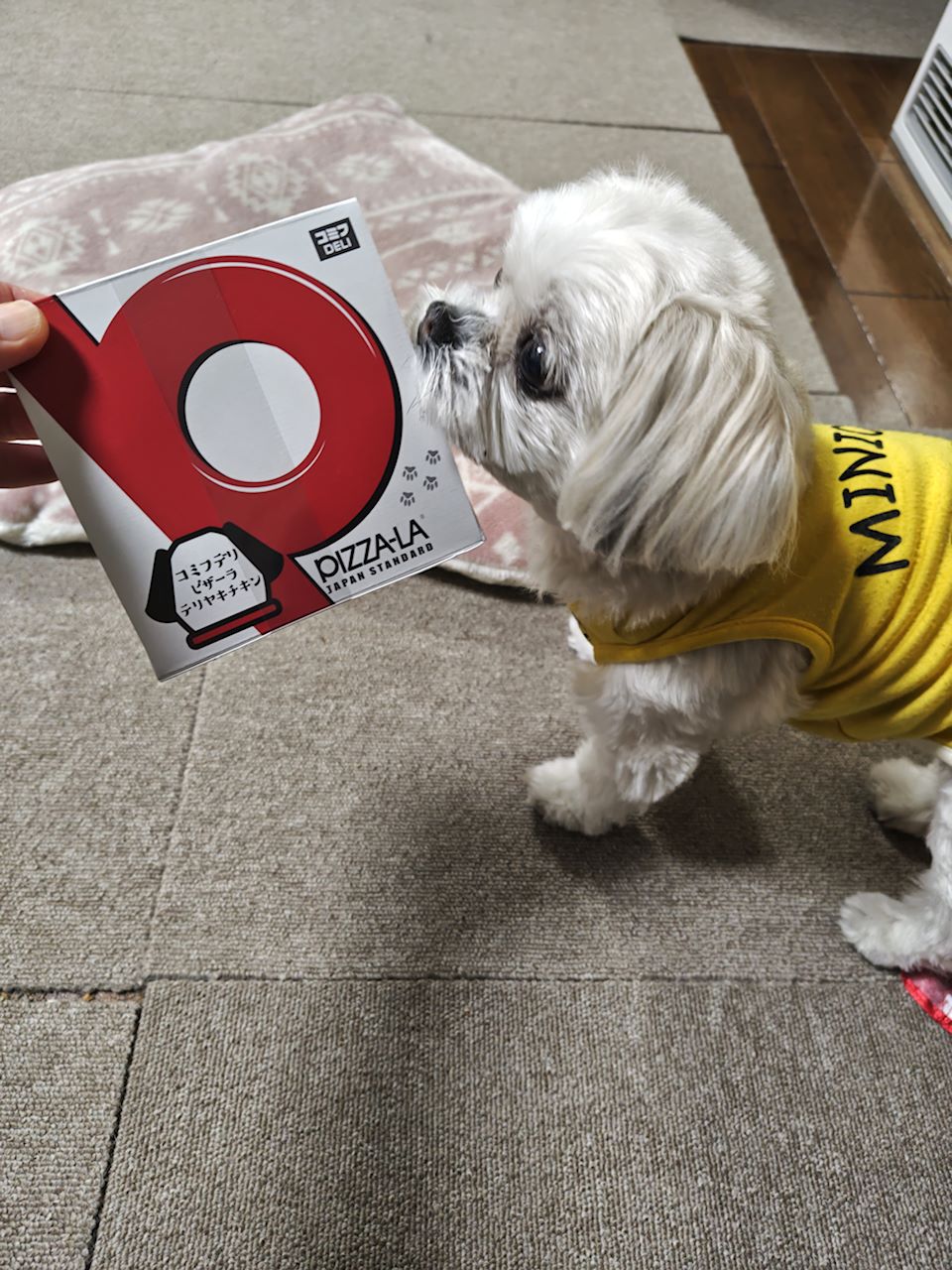 くるみちゃんは今日が誕生日。ケーキと迷ったけど、くるみちゃんは辛い物の方が好きなので、ピザにしたよ。