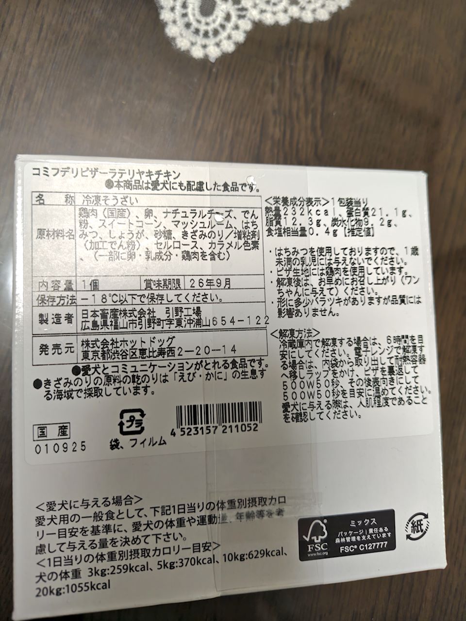 このピザは、味付はないけど人間も食べられる品質の物だそうです。
