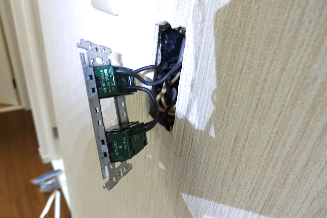 いえ、これは配線自体は間違っていないのですが。右でも左でも動くけれども、出来たらスイッチの表から見て向かって右側に電源L線を持ってきた方が良い(つまり、スイッチの黒ポツの印が付いている方)、と試験では学びました。こういう時、『やっぱり資格を持っていなければ工事ができない』と実感します。配線の知識は安全上要ります。