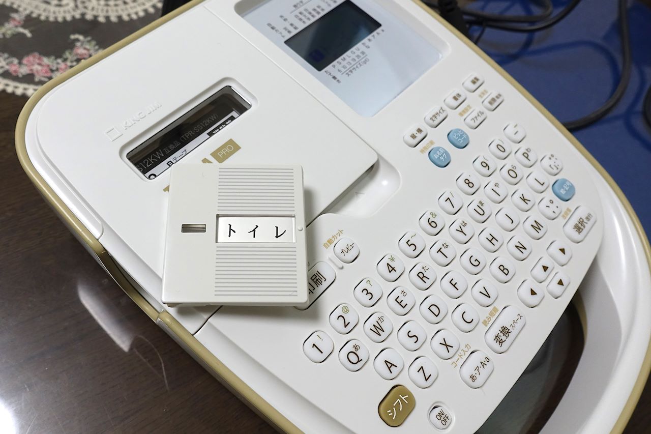 さらに、今回はネームを入れるタイプのハンドルを買ったので、家にあるキングジムのテプラProでラベルを作成。