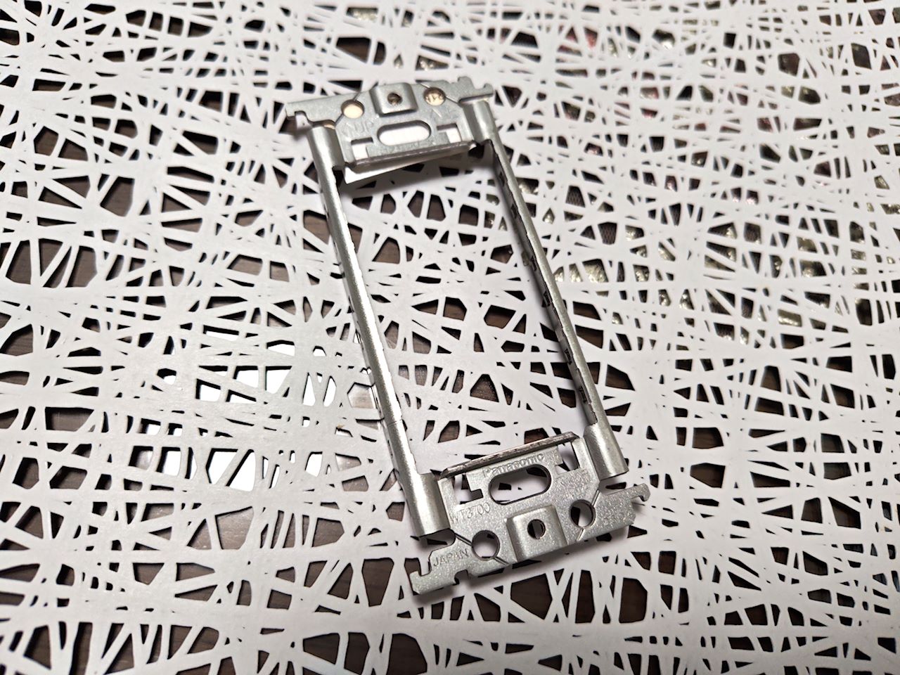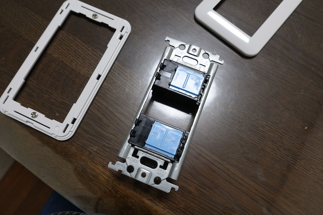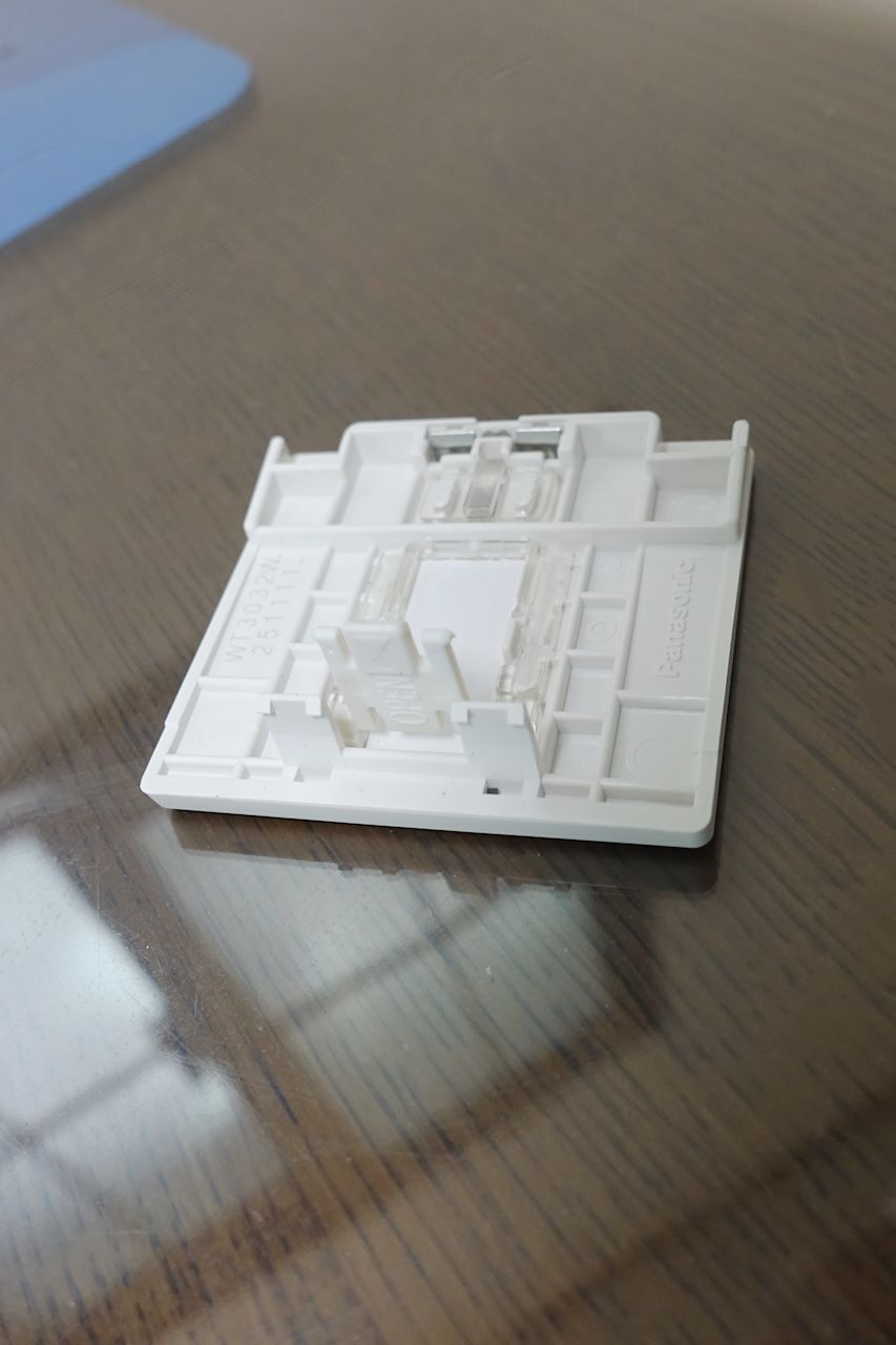 フルカラーと呼ばれる、いわゆる昔のスイッチは、取付枠をマイナスドライバーとかでかしめて取り付ける方式だったのが、ワイド21ではワンタッチで穴にはめ込むだけとなっていました。