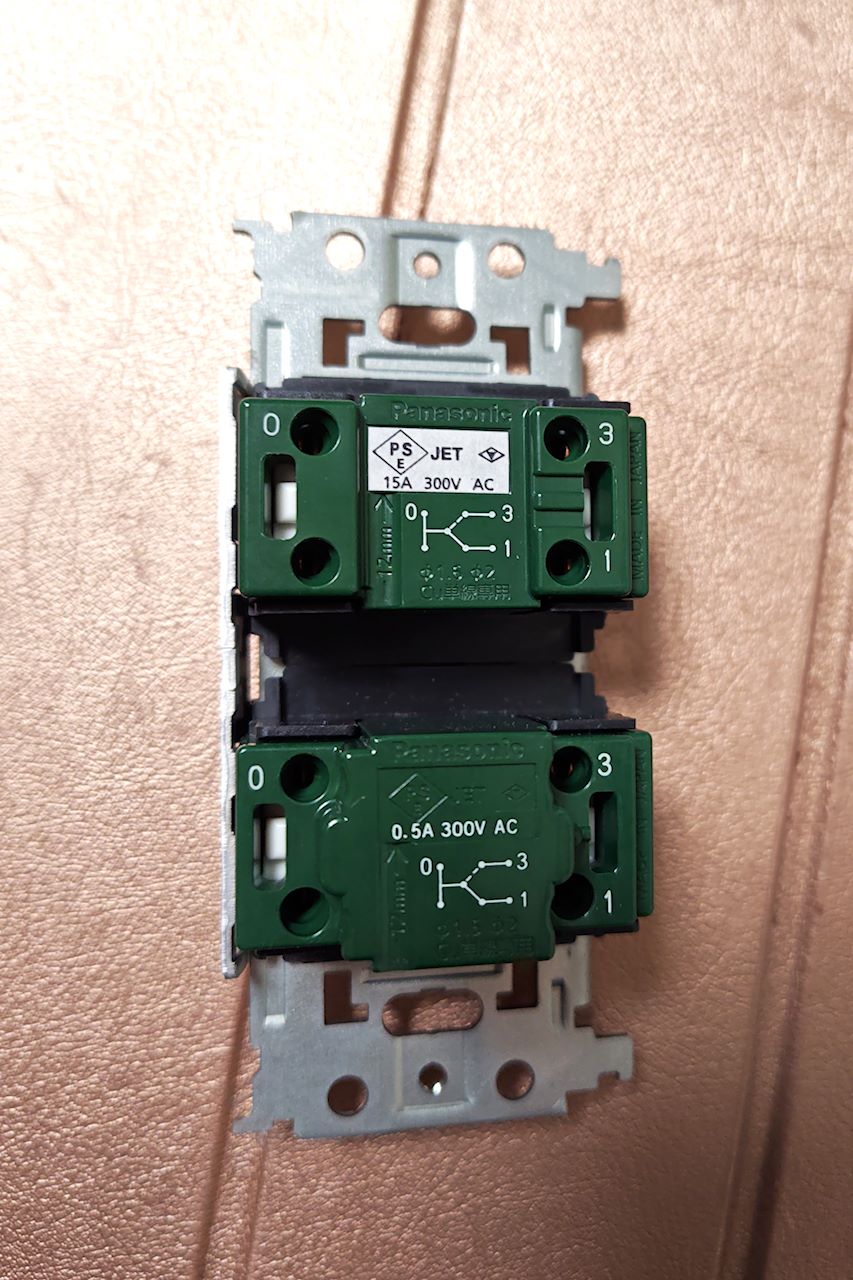 SO-STYLEは片切りスイッチがありません。3路スイッチを片切りとしてつかうしかありません。片切りにする場合、0と1に配線するそうです。