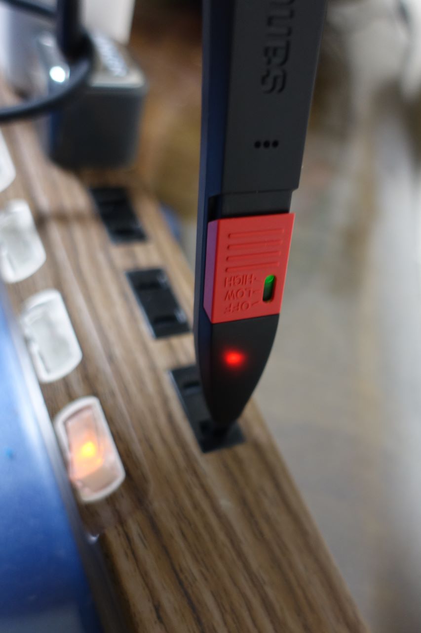 今回工事にあたり、ブレーカーを落として、本当に電気が切れているかどうかを調べる『ペン型検電器』なるものを購入しました。