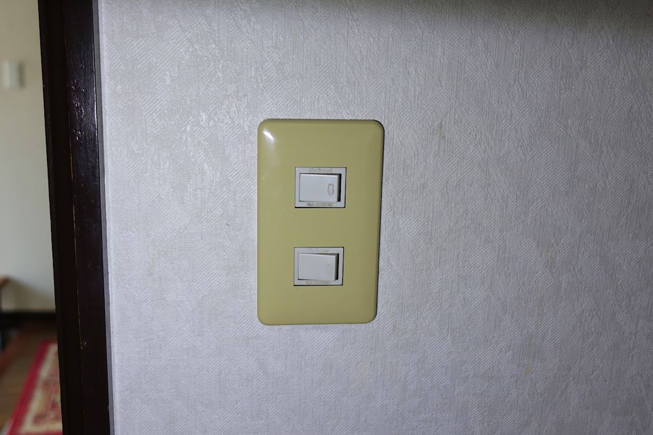 電気を点けるとホタルは消えます。このスイッチはフルカラーのようにシーソー型。入り切りが見てはっきりわかります。
