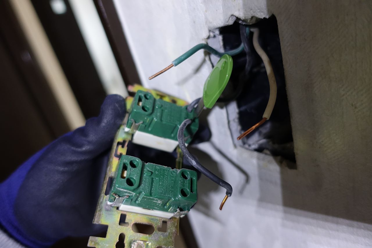 カバーをめくり。(ブレーカーを落としているので暗いです)