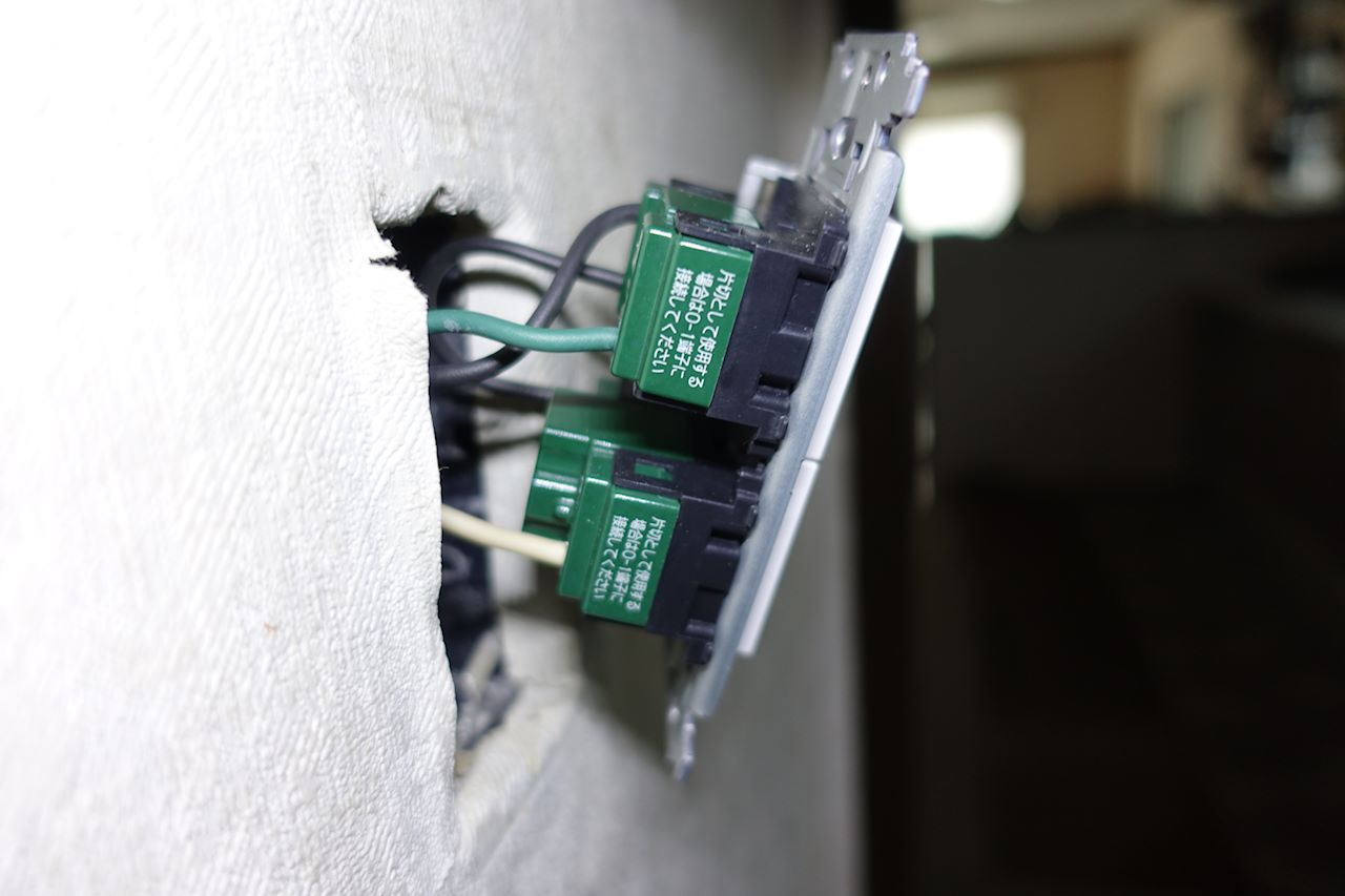 くだんの計画通り、0-1に配線して、壁の中に戻します。