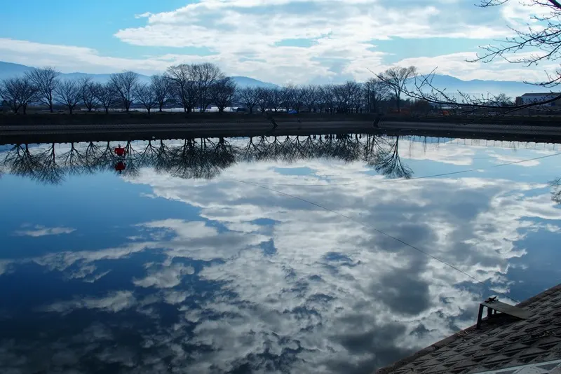 お天気がよく暖かな日で、凧揚げをしていたり、子供が遊んだりしていました。