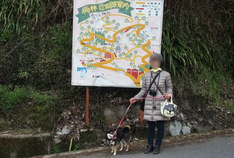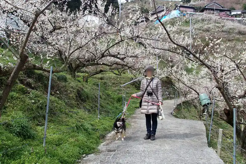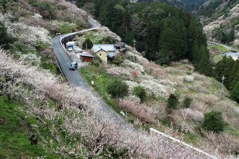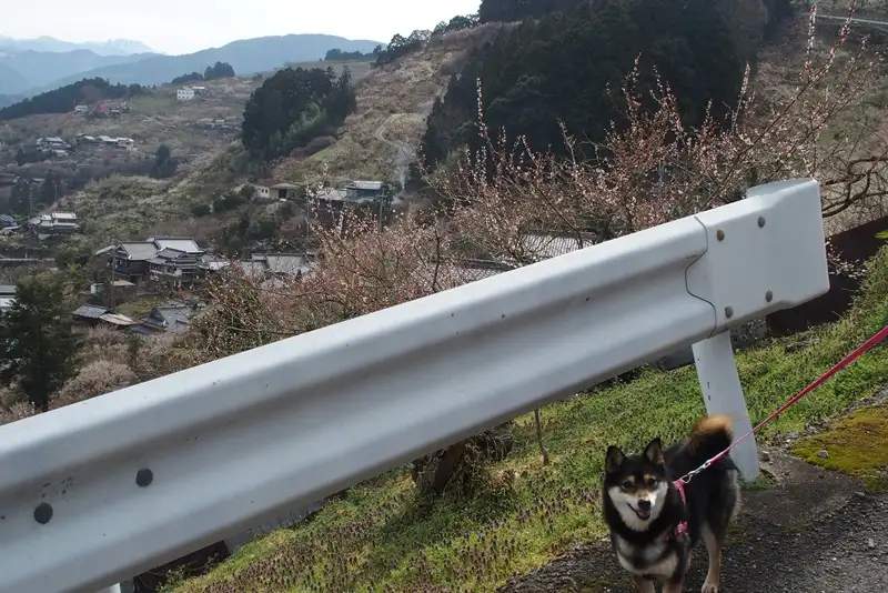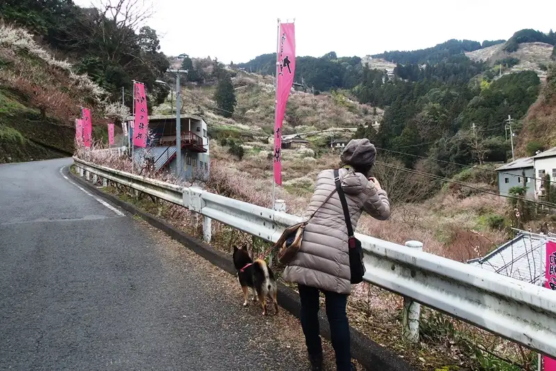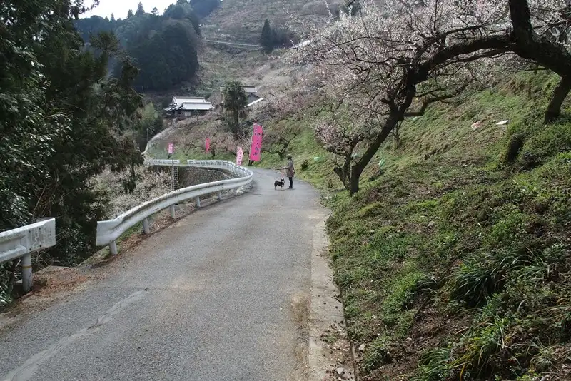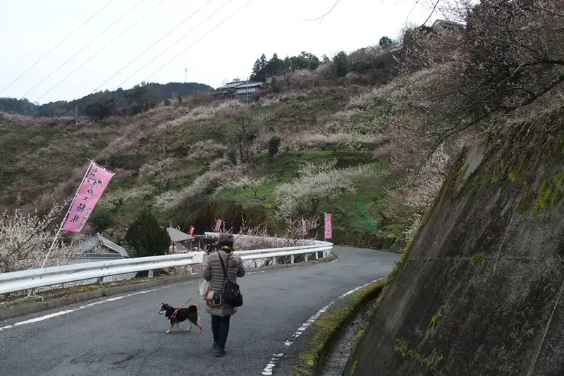 そこから山道で梅を見て回ります。駐車場のおじさんは『ぜんぶで4キロほどあります』って教えてくれました。