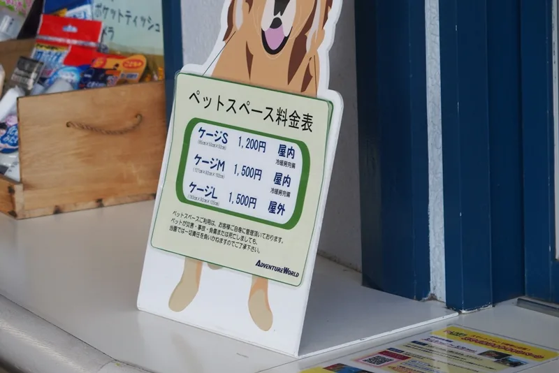 あーちゃんには悪かったんですが、アドベンチャーワールドでは、別室でお預かり。¥1500のケージ。