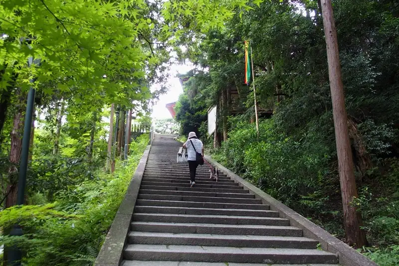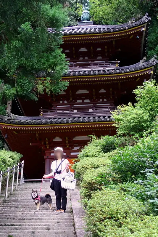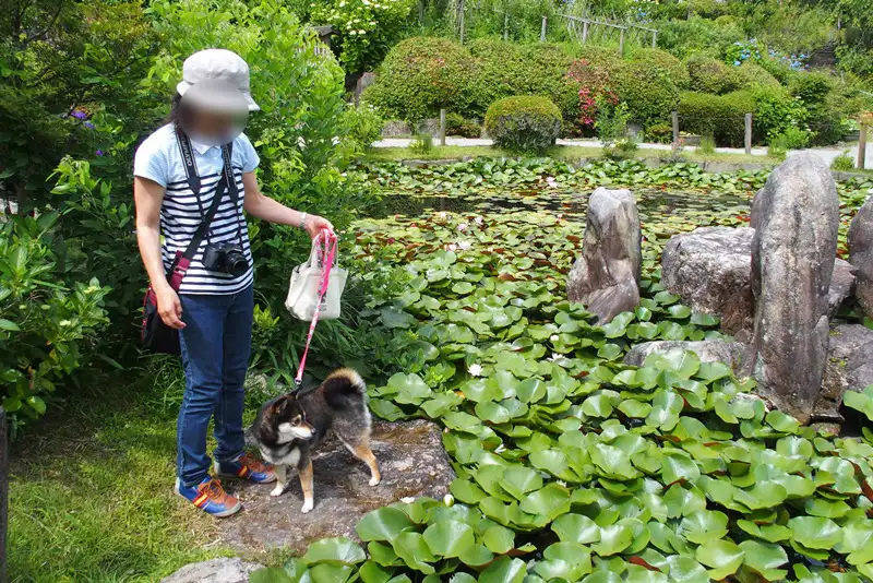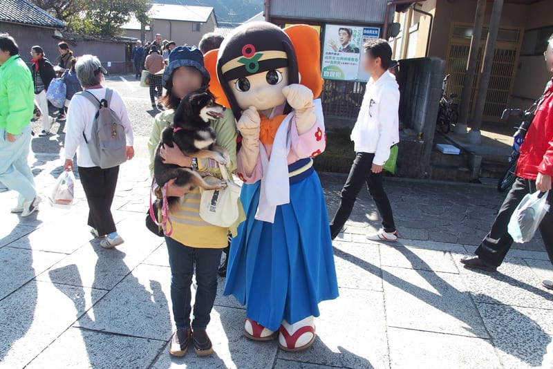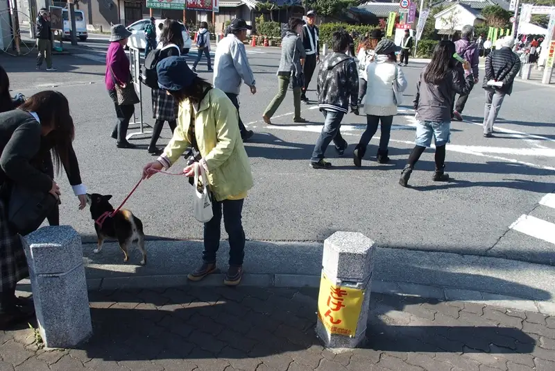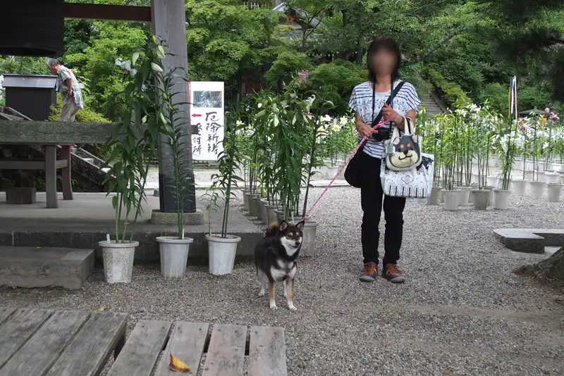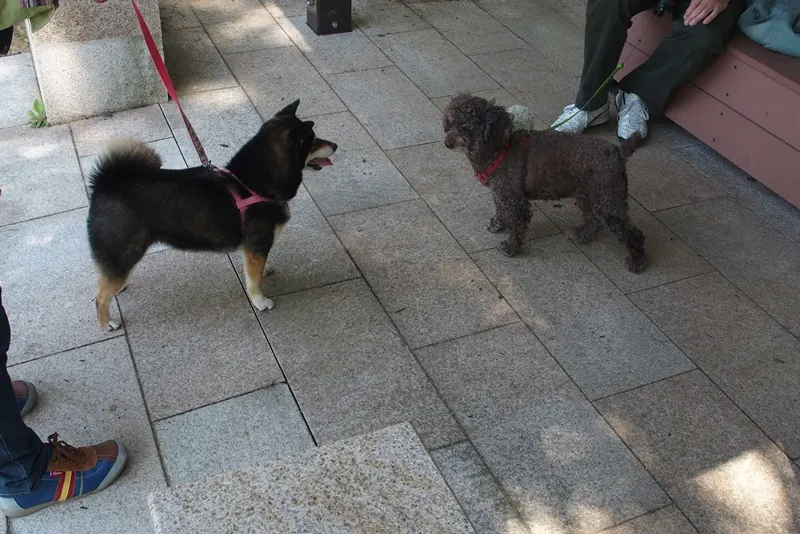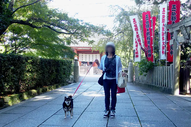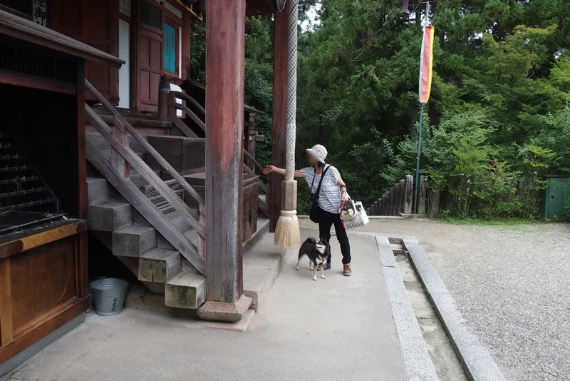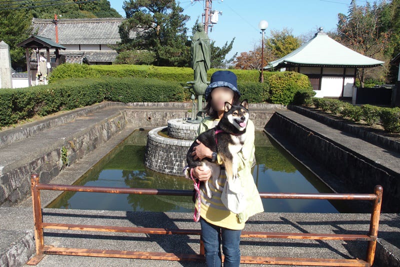 犬がいいのか悪いのかわからなかったので、道路は歩かせましたが、境内の中はだっこしました。