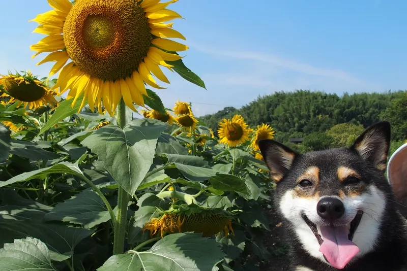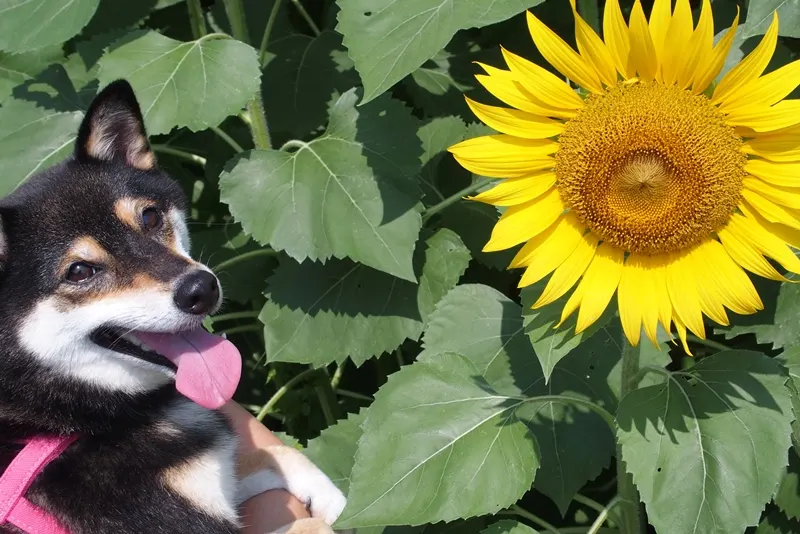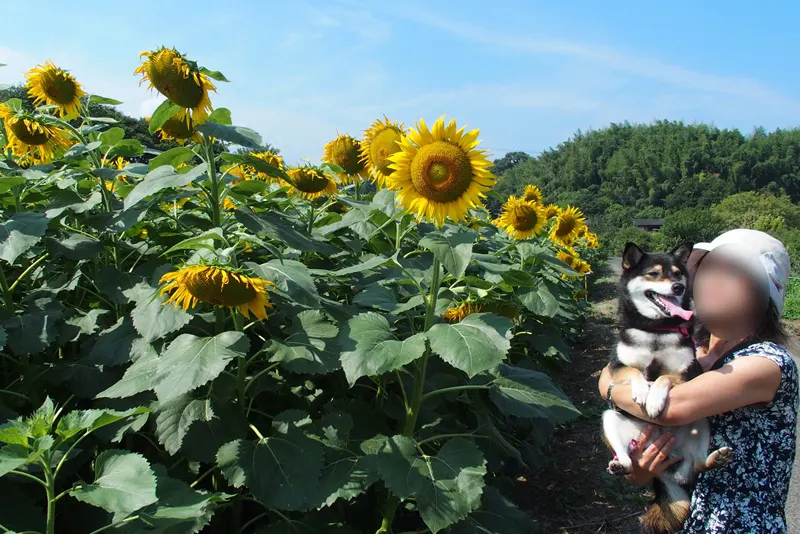 今日は暑かったんですが、あーちゃんにガマンしてもらって、一緒にひまわりを見てきました!