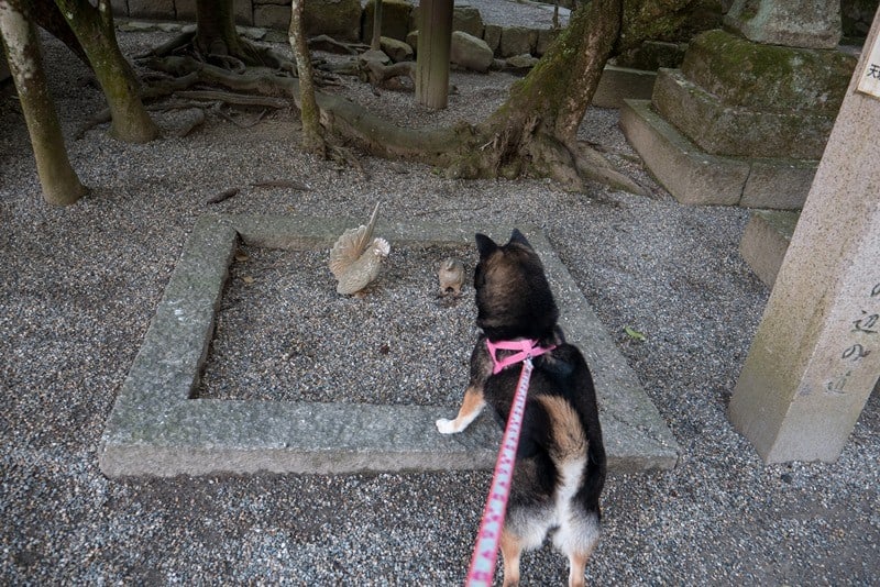 あーちゃんは神社でも大人気。大概の人は手を差し出して、かわいいね~と言ってくださいます。