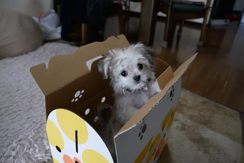 くーちゃんを入れているのは、お風呂場でタオルを入れている布ボックスです(笑)