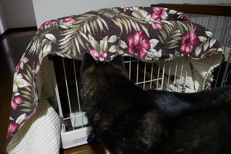 あーちゃんのボックスに入ればいいのですが、2匹だとちょいせまいし、あーちゃんが嫌がる?かもしれないので。