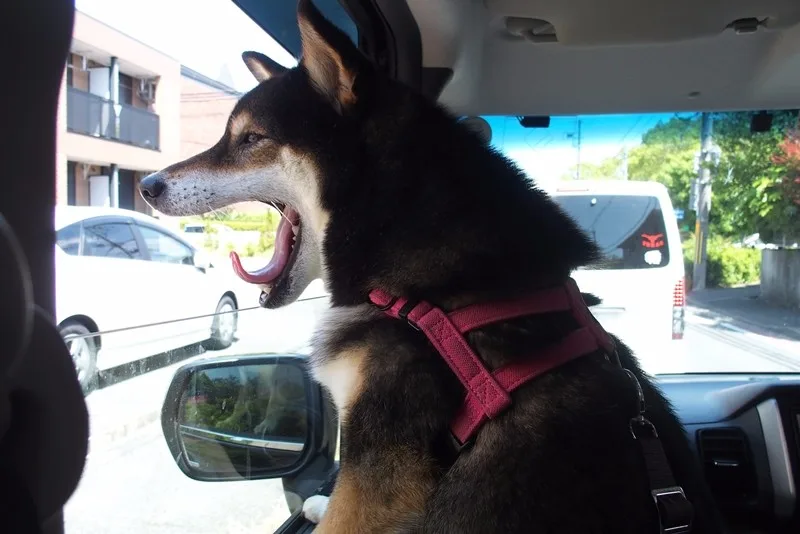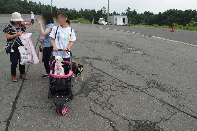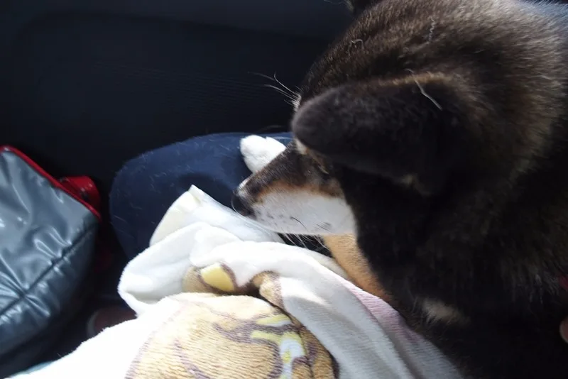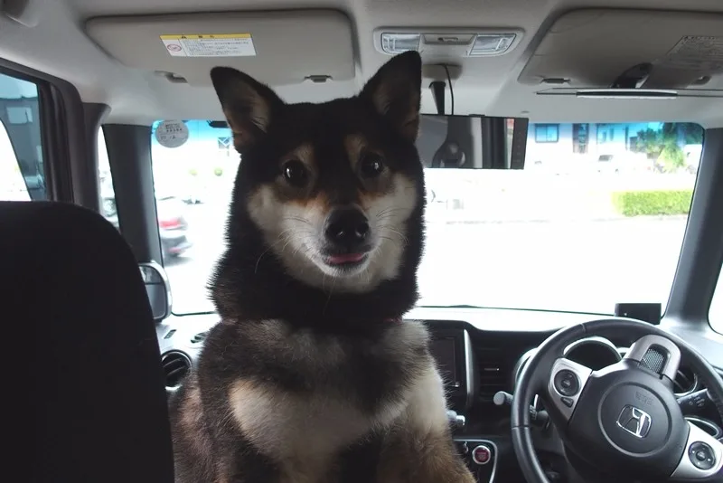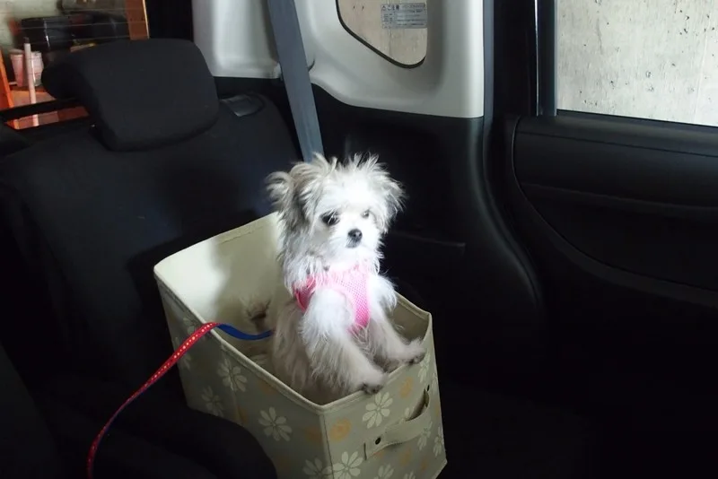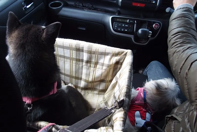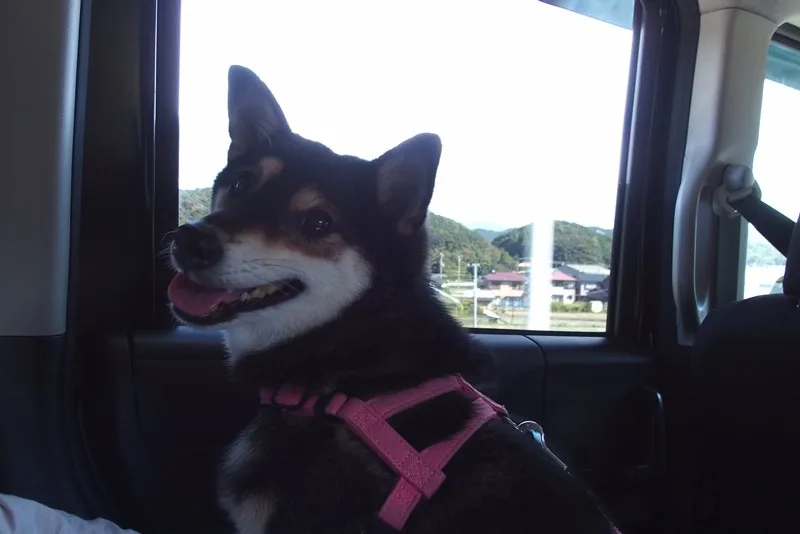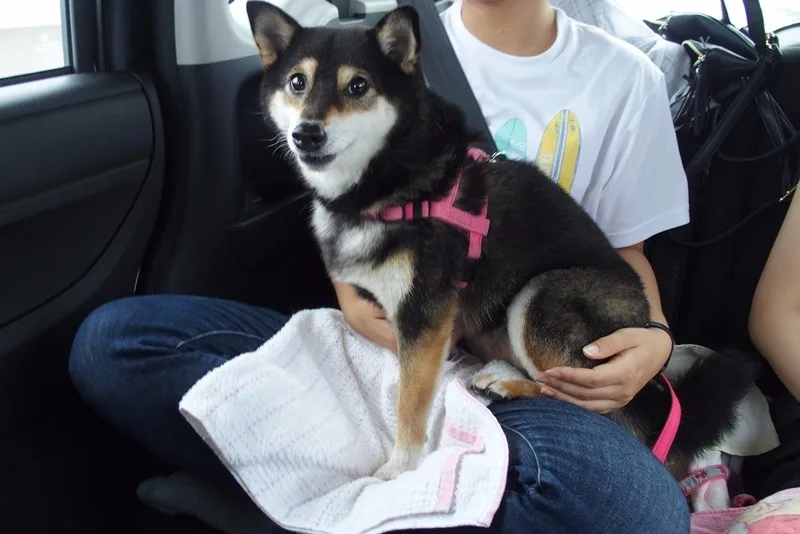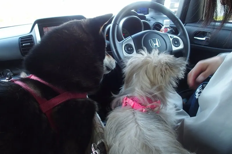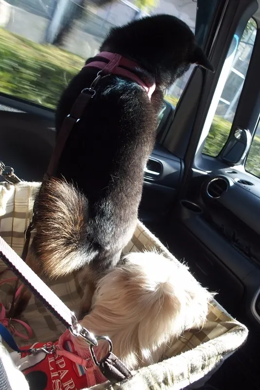 最初くーちゃんはヒート中で、お留守番させるつもりだったんですが、私たちが支度を始めると、もうついてくる気マンマンで。