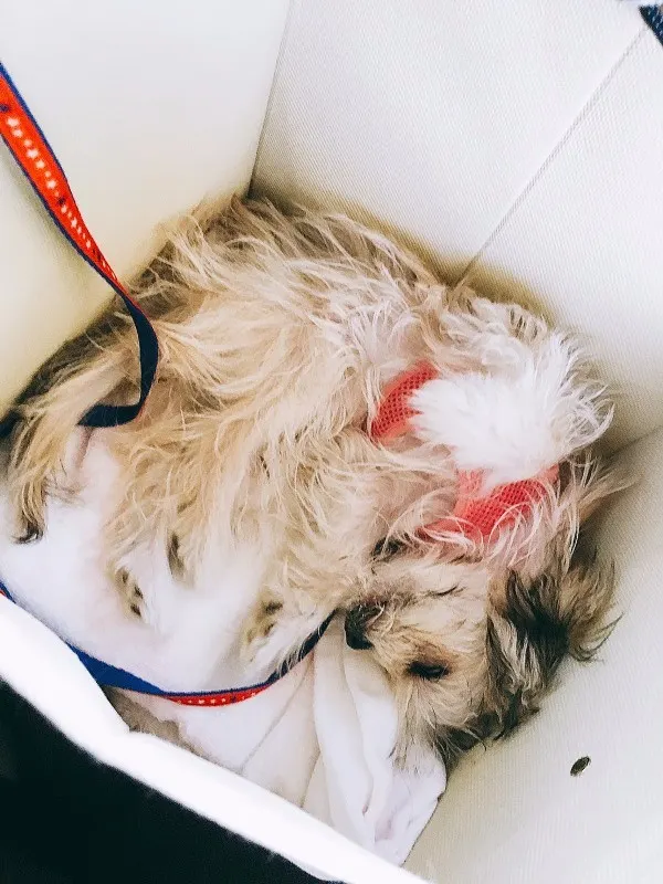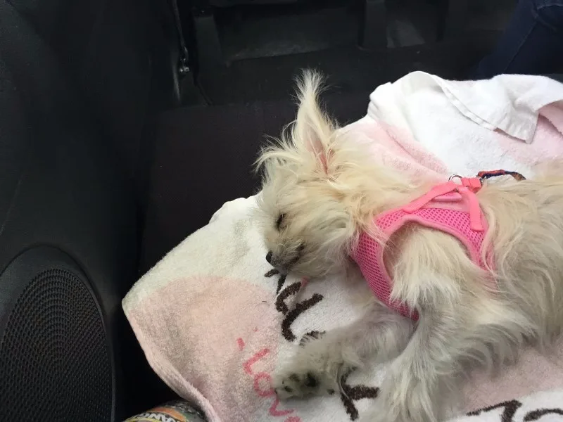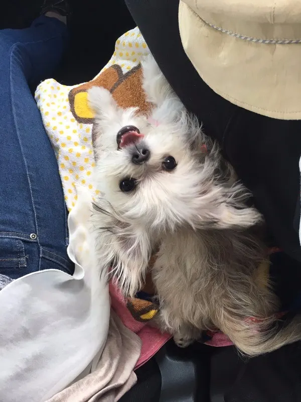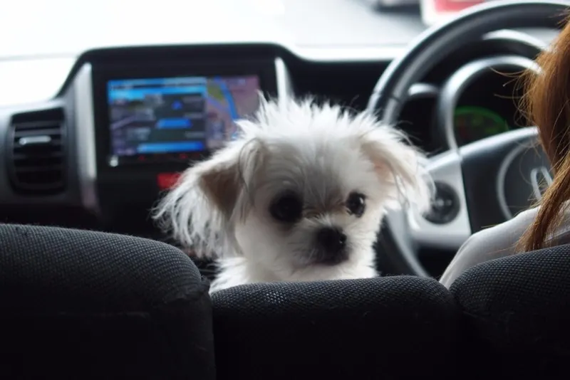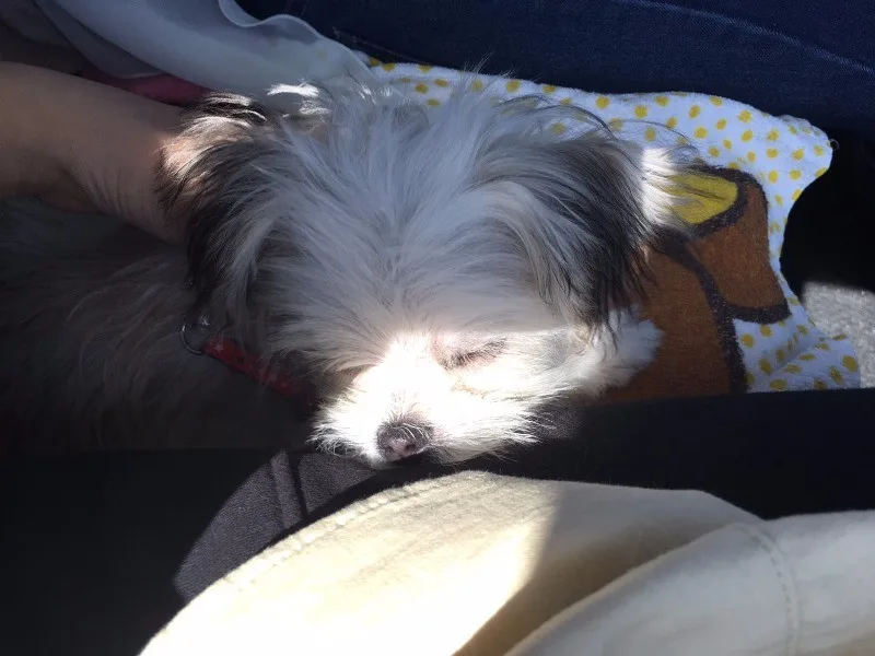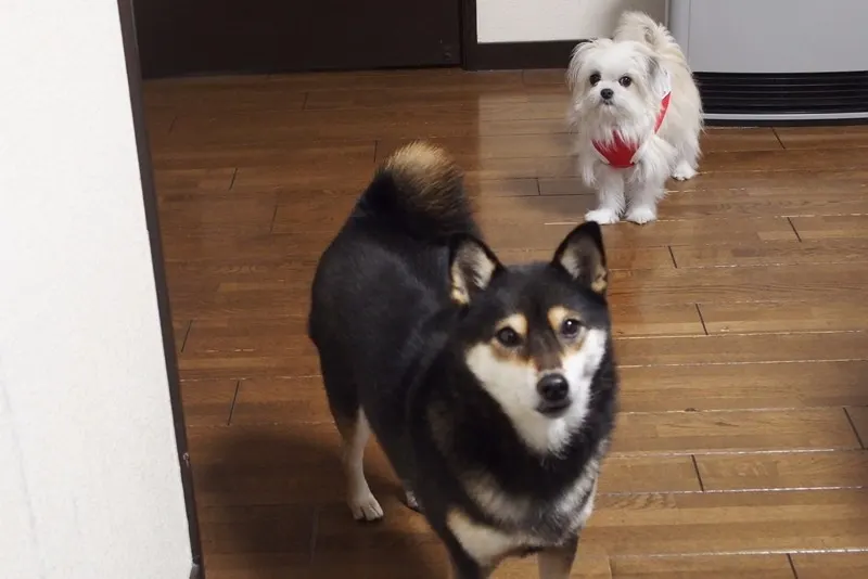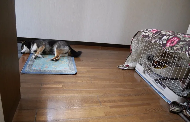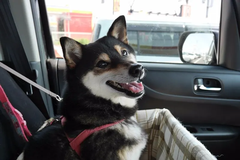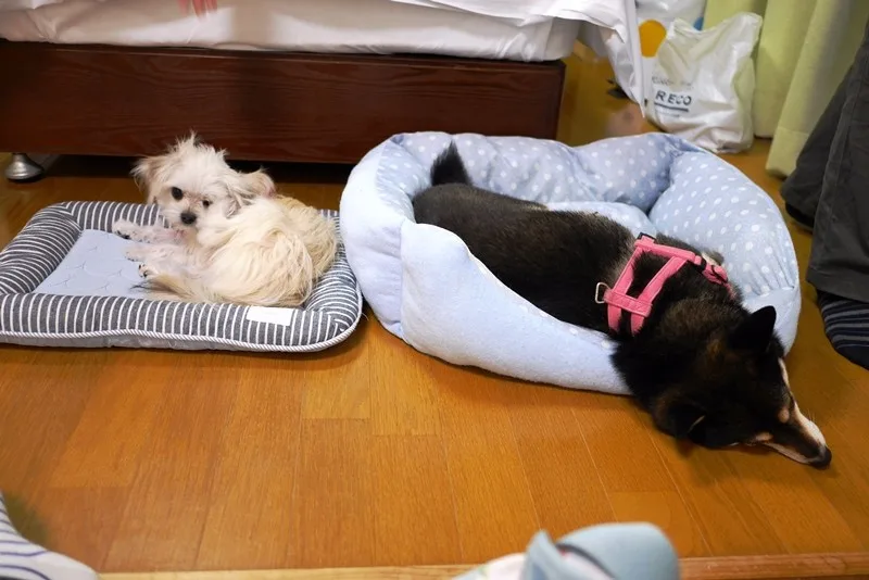 最初くーちゃんはヒート中で、お留守番させるつもりだったんですが、私たちが支度を始めると、もうついてくる気マンマンで。