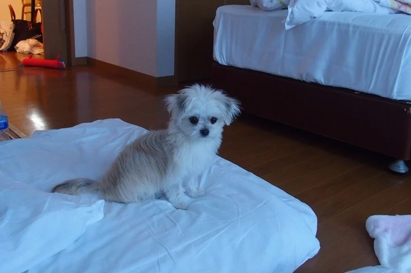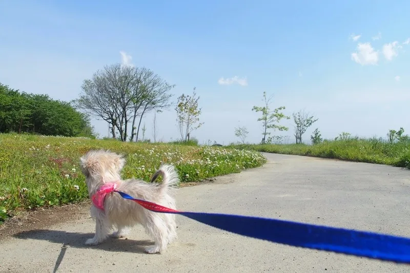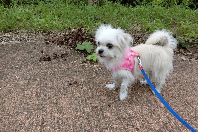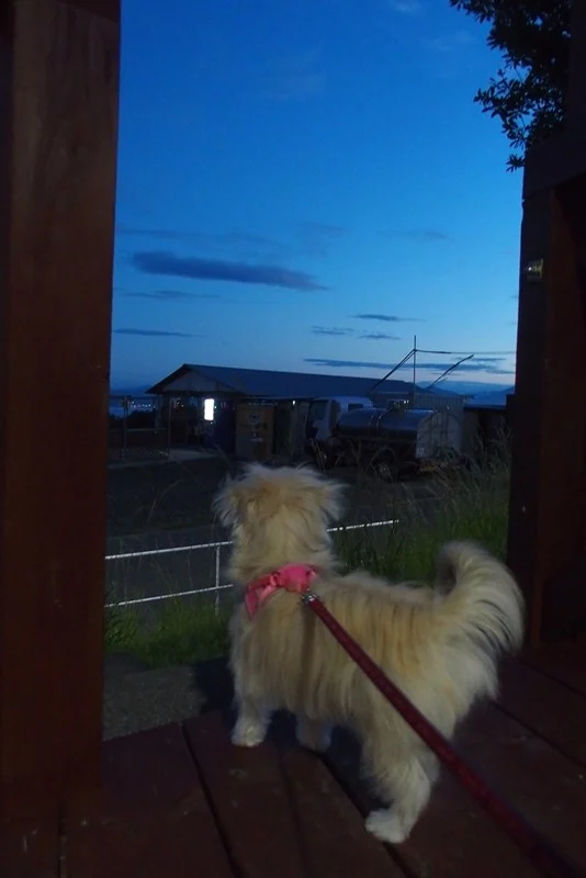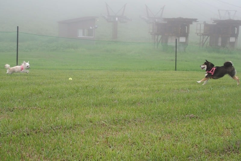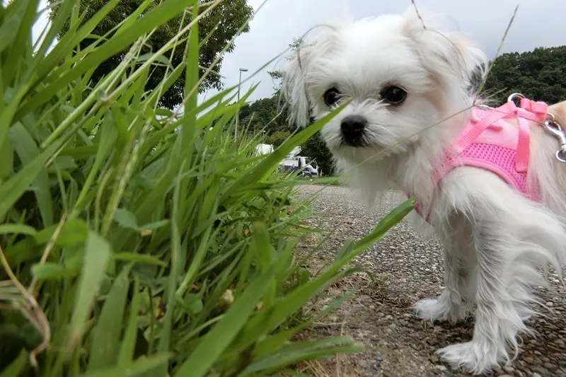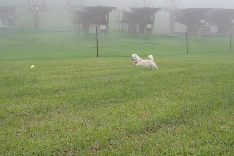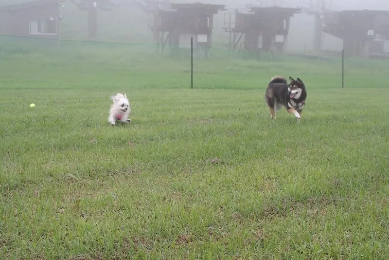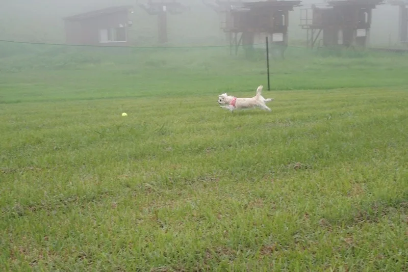 おもらしゼロです。コテージの中庭?がもはや散歩に適した雑草地で、そこに出してやるとすぐにシッコしてました。