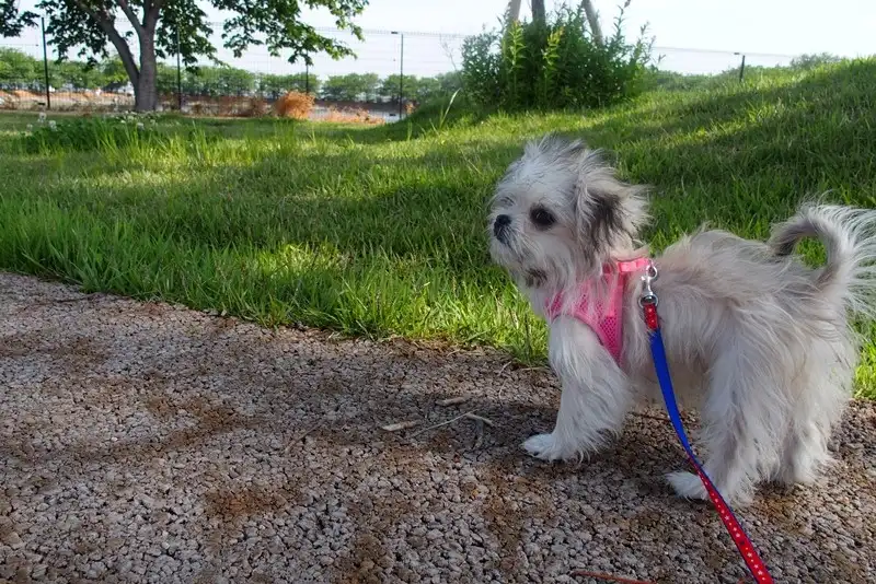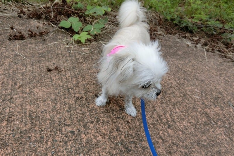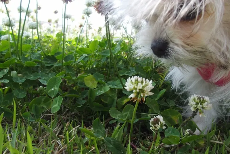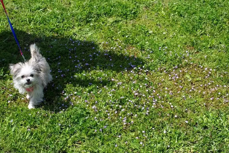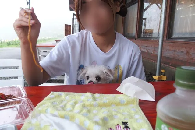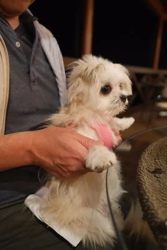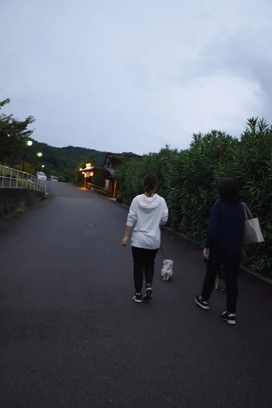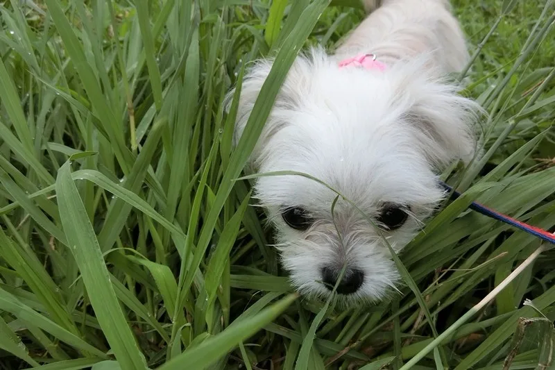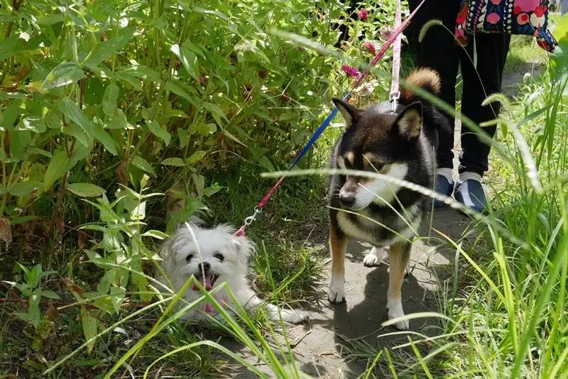 おもらしゼロです。コテージの中庭?がもはや散歩に適した雑草地で、そこに出してやるとすぐにシッコしてました。