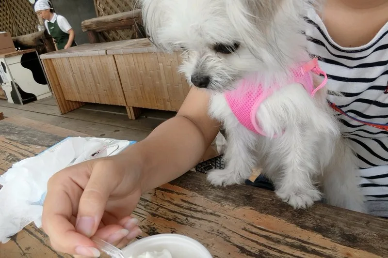こちらは、ワンコOKで、カート、キャリーもしくは抱っこだったらOKというありがたい施設。