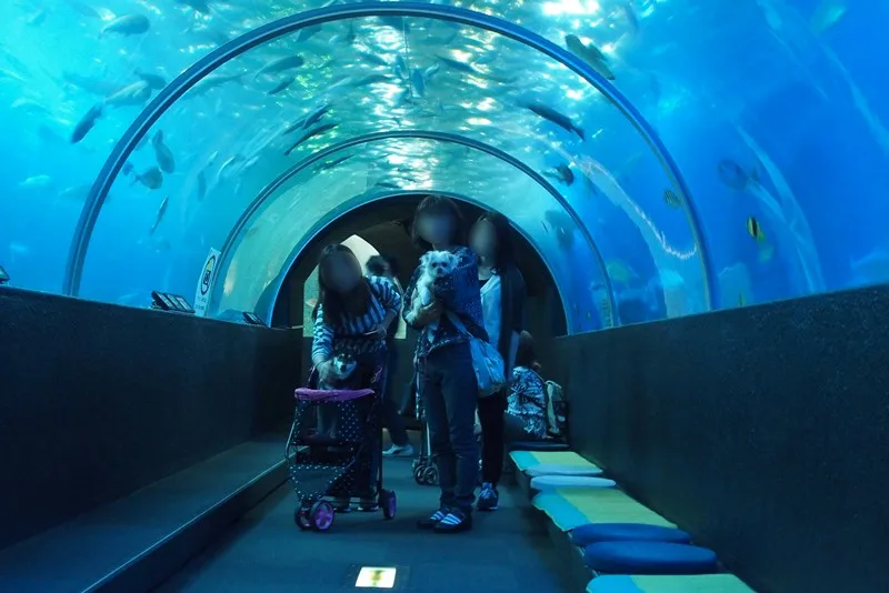 海中展望塔から見る海は、前日の雨の影響で、ちょっと濁ってたんですが、それでも熱帯魚がいっぱいいました。