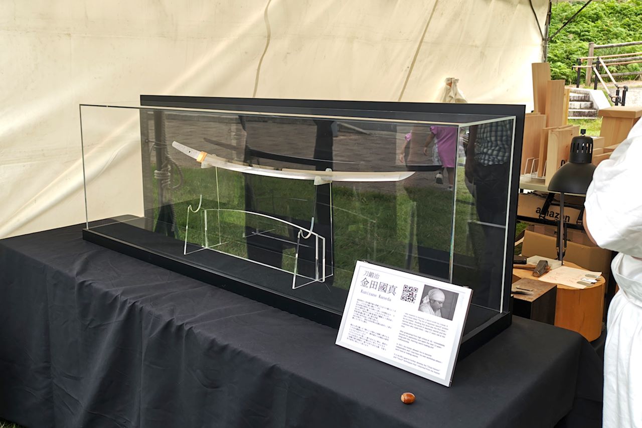 お隣のブースには、刀鍛冶の人が来てて、日本刀が展示されてたでちゅ。とっても人気だったでちゅよ。