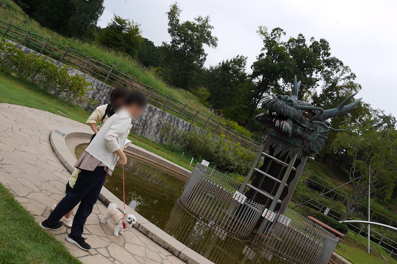 なんとか駐車場に車を停めて、龍の広場へ向かうでちゅ。