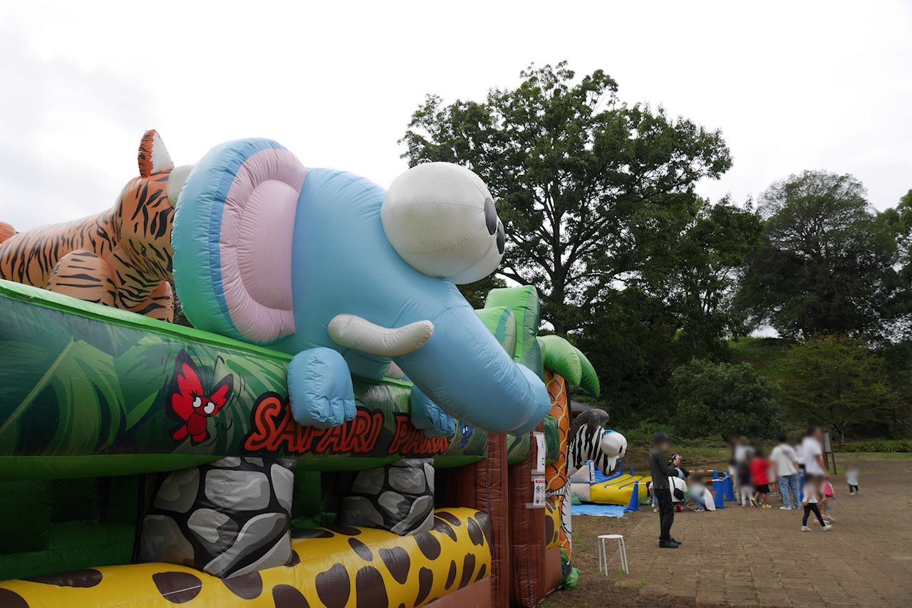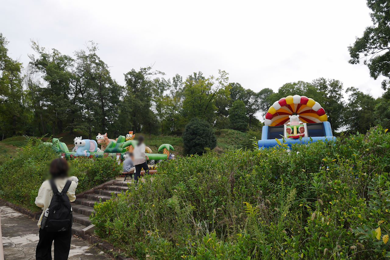 丘の上に設置された、迷路とエアスライダーに向かうでちゅ。