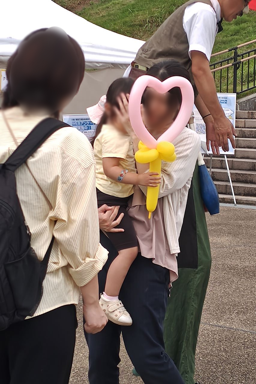 『大道芸のおじちゃまだよ。風船を作ってくれるみたい』
