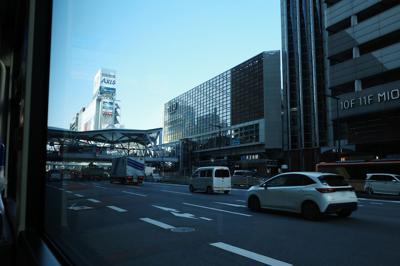『天王寺』⇔『上本町』の通称100円バスに乗る(車内から)。って、今は料金が改定されてて、¥120になってますが。手軽で、素早く近鉄にアクセスできます。
